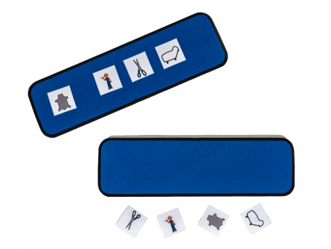 Prodotte in diversi formati, le tavolette Velmat sono rivestite di una speciale stoffa che permette di attaccare e staccare con grande facilità piccoli oggetti o cartoncini, cui sia stato applicato un pezzetto di Velcro® maschio.